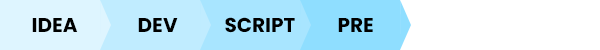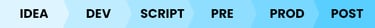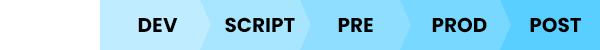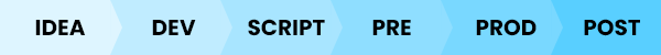 From creative ideation -> development -> script -> pre-production -> production -> post production -> delivery